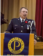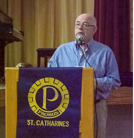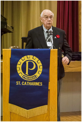Gerry Taylor present a “A personal/family reminiscence from events of World War I” during which he spoke in the voice of his father who fought and was severely wounded in the front lines. His son, Gary, a member of the Niagara Police Service, described the trip that he and his son, James, took to the battlelfield where his grandfather had fought.